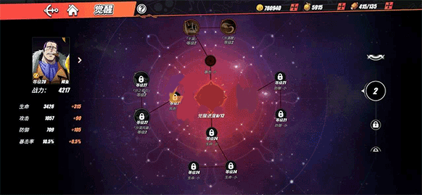 觉醒玩法能够提升玩家的基础属性,并且觉醒解锁的格子数量越多,所带来的属性加成也就越高。在游戏中,玩家的基础技能依靠觉醒玩法来升级,满级技能与1级技能尽管效果相同,然而伤害却存在40%的差距。
