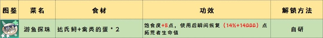 2. 鱼子薯球:包含鱼子酱与白薯,食用后可提升物理攻击,幅度为1%加上70点。