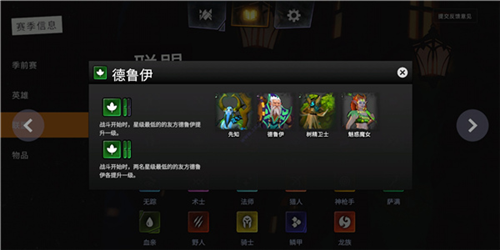 2当场上存在2名德鲁伊时:星级处于最低的友方德鲁伊会提升一个等级。