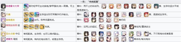 4、道中一队与大世界一队,同样是负责所有道中区域的队伍。依据自身需求,可选择提升刷图速度的速刷队,参与boss轮战的攻坚队,据点全自律或者贪省逆压制的对策队,插入练级角色或是刷科研角色的练级队等等。倘若你是普通玩家,这支队伍也需应对几乎所有道中情况。通常在这种时候,需要把强力舰船节省下来留给攻坚主力队伍,所以道中不会使用过强的舰船,新手玩家更是如此。度过游戏中期之后,可以在一队中插入强力角色,以此增强刷图速度与破敌能力。一般而言,该队伍需要奶妈。鉴于一队承担了绝大多数的出击场景,通常认为可以采用一些提速策略;新手玩家默认携带独角兽改就可以。