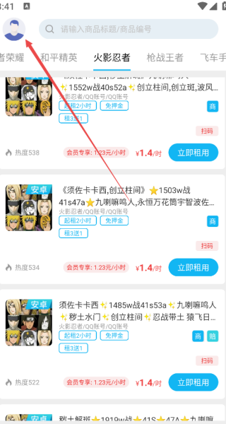 1. 一进入平台,便能看到诸多热门游戏,轻点一下就能查看相应账号。