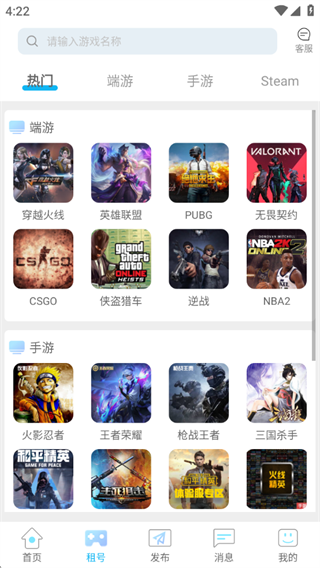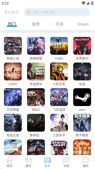 3、在这里,除了能够租号,还可以出租自己的游戏账号。具体操作是先选择要发布的游戏类型,然后再发布账号。