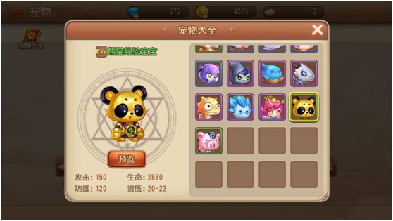 游戏中的经验宠物包含:小猪经验宝宝以及熊猫经验宝宝。