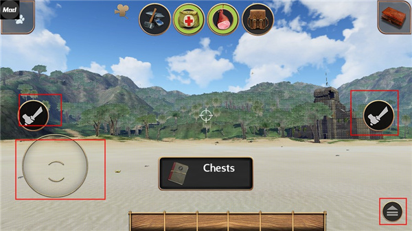 该游戏运用第一视角,屏幕左右两边各有一个虚拟圆圈,左边的虚拟圆圈用于控制角色移动,右边的虚拟圆圈则负责操控视角。在这两个虚拟圆圈的上方,各设有两个动作指令按钮。这些动作指令按钮会依据不同的指令,实现攻击、建造、采集等动作。
