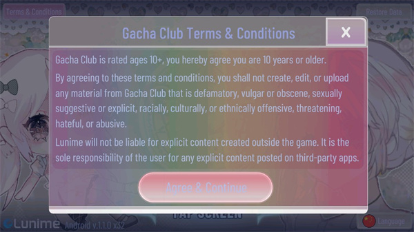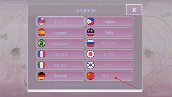 1、第一步,进入GACHA甜甜正版,在此处点击右下角的language。