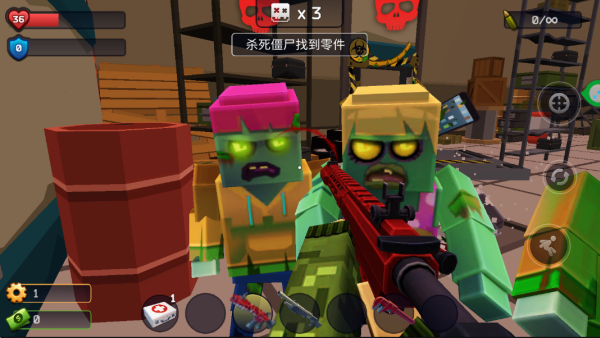 2、依照箭头的指示,冲破僵尸的包围圈,运用各种枪械武器歼灭一路上的敌人。