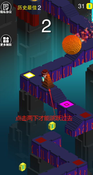 1、动态难度系统,滚石的速度会依据玩家表现进行智能调节,如此既能维持紧张刺激的氛围,又不至于让玩家感到绝望。
