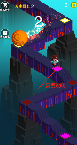 2. 操作简单便捷,极易上手,只需滑动屏幕就能操控角色转向、跳跃,然而反应速度关乎生死。