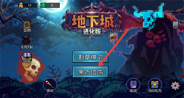 1. 开启地下城进化版游戏,于主界面点击黑夜塔防模式来展开游玩。