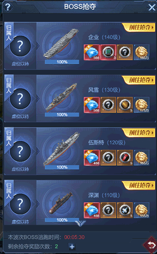 该活动每周三、周五的12点至20点开放。活动开启时,战舰BOSS初始等级为1级,击败当前等级的BOSS后会刷新出更高一级的BOSS;即便到了下次活动开启时,BOSS也会延续上次结束时的等级继续出现。活动开启当天,玩家拥有10次挑战机会,若机会不足,还能消耗钻石购买额外挑战次数。参与这个玩法,玩家可以获取大量碳化钢、红色装备、金色装备精华以及金币,这些奖励可用于在装备商店中兑换各类装备。