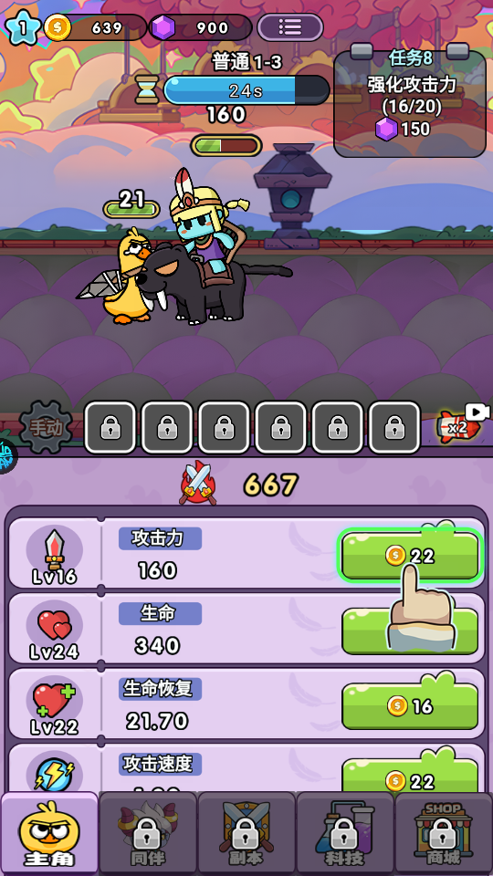 1、挑战关卡通关可以获得各种金币、钻石等奖励;