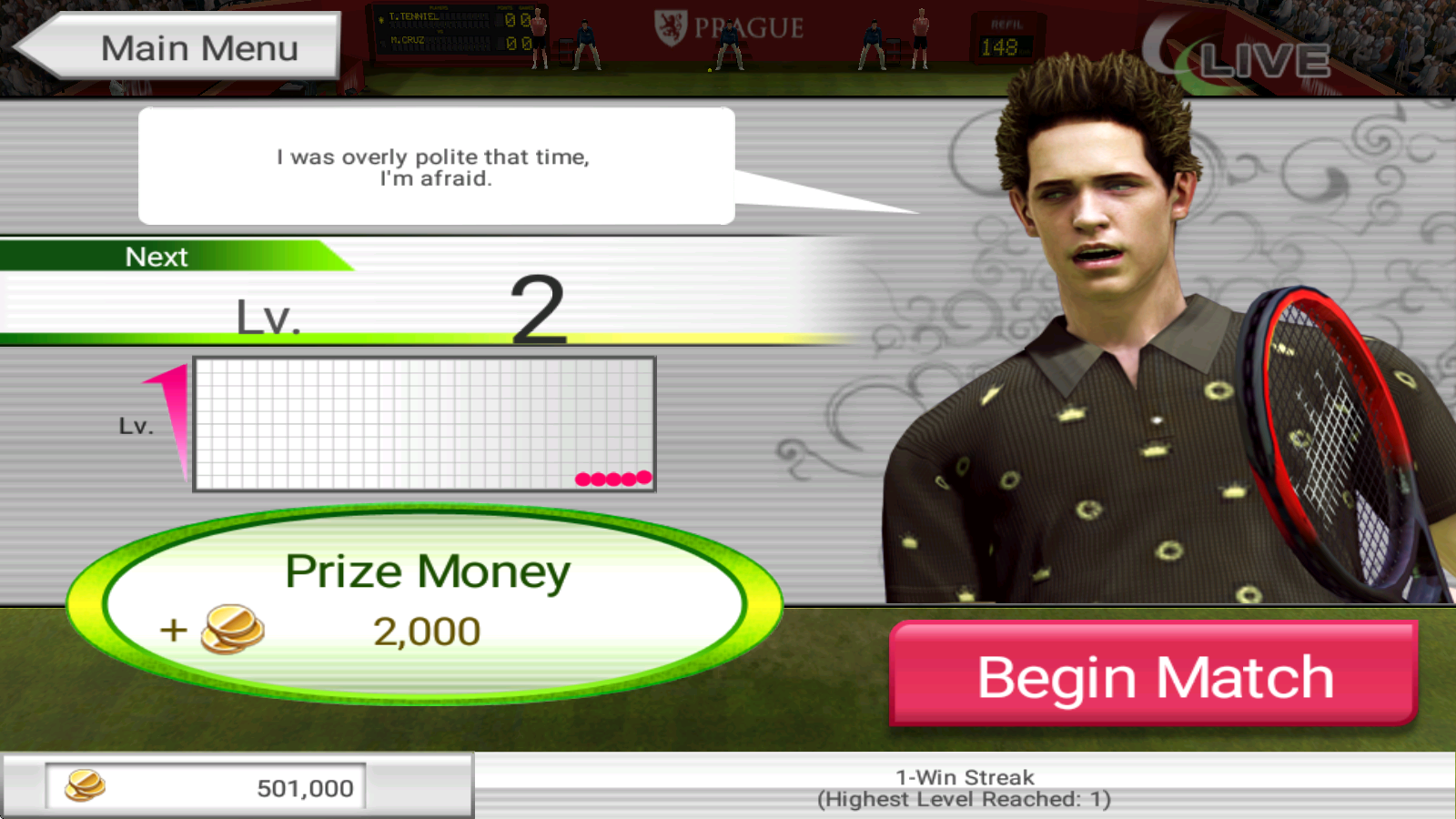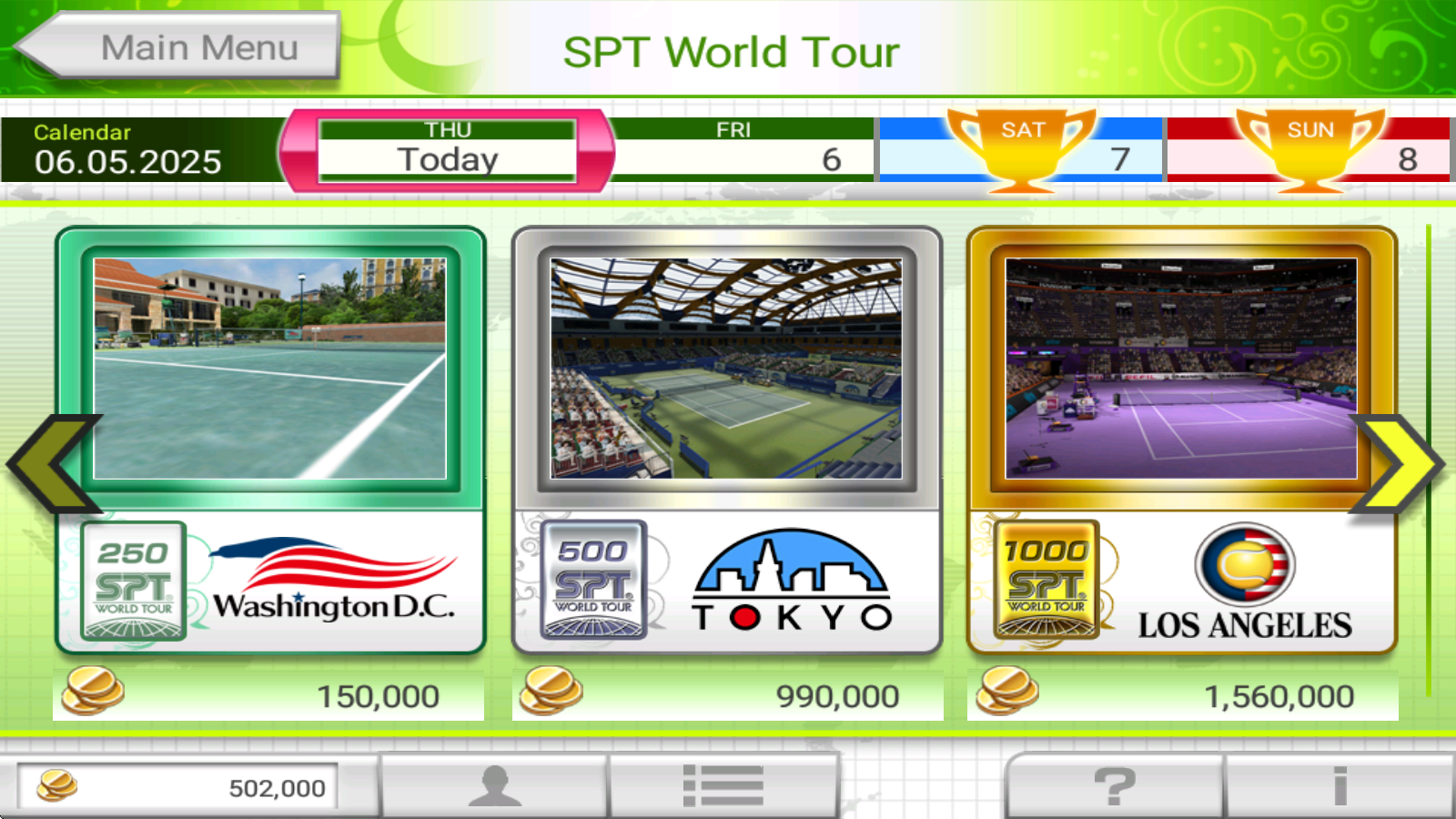 3、你将会体验到和真实网球赛事一样的职业生涯,根据时间表去参与各大赛事,不断的去提升自己的世界排名。