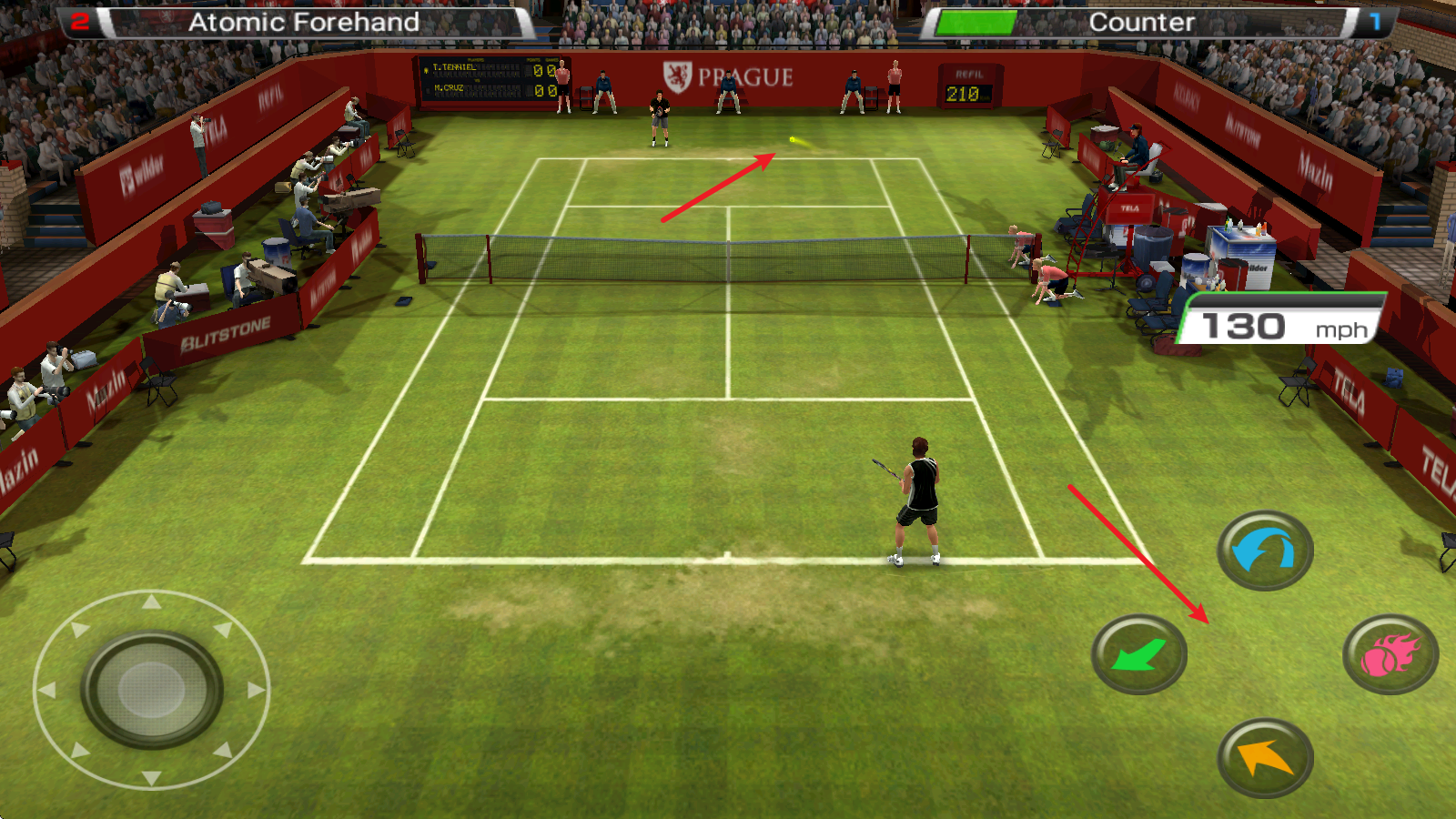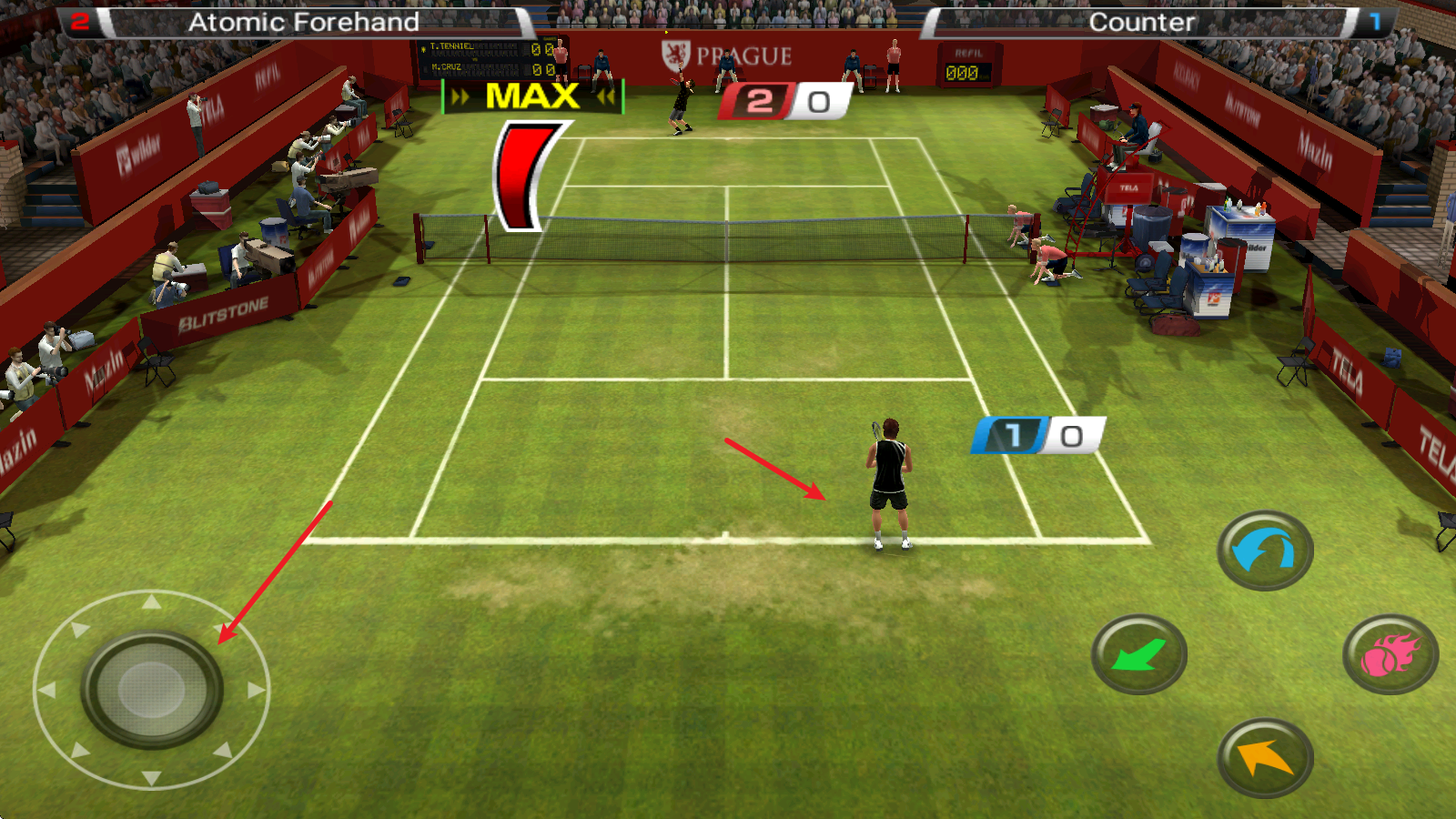4、通过控制人物跑动来找到合适位置进行击球,右侧则是各种不同击球方式。