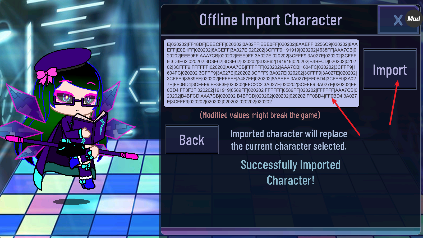 4、最后我们把复制好的代码粘贴到中间的输入框里就行,点击import就能看到复制的人设了。