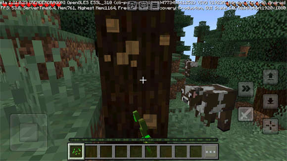 6、进入游戏后左边摇杆控制角色的移动,右边控制攻击/采集、奔跑、跳跃、蹲下、瞄准/放置。