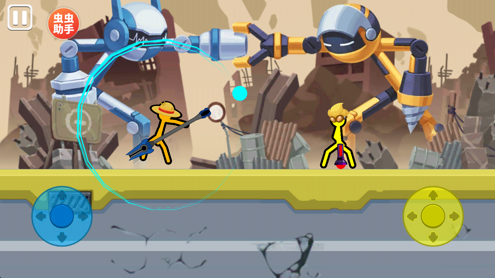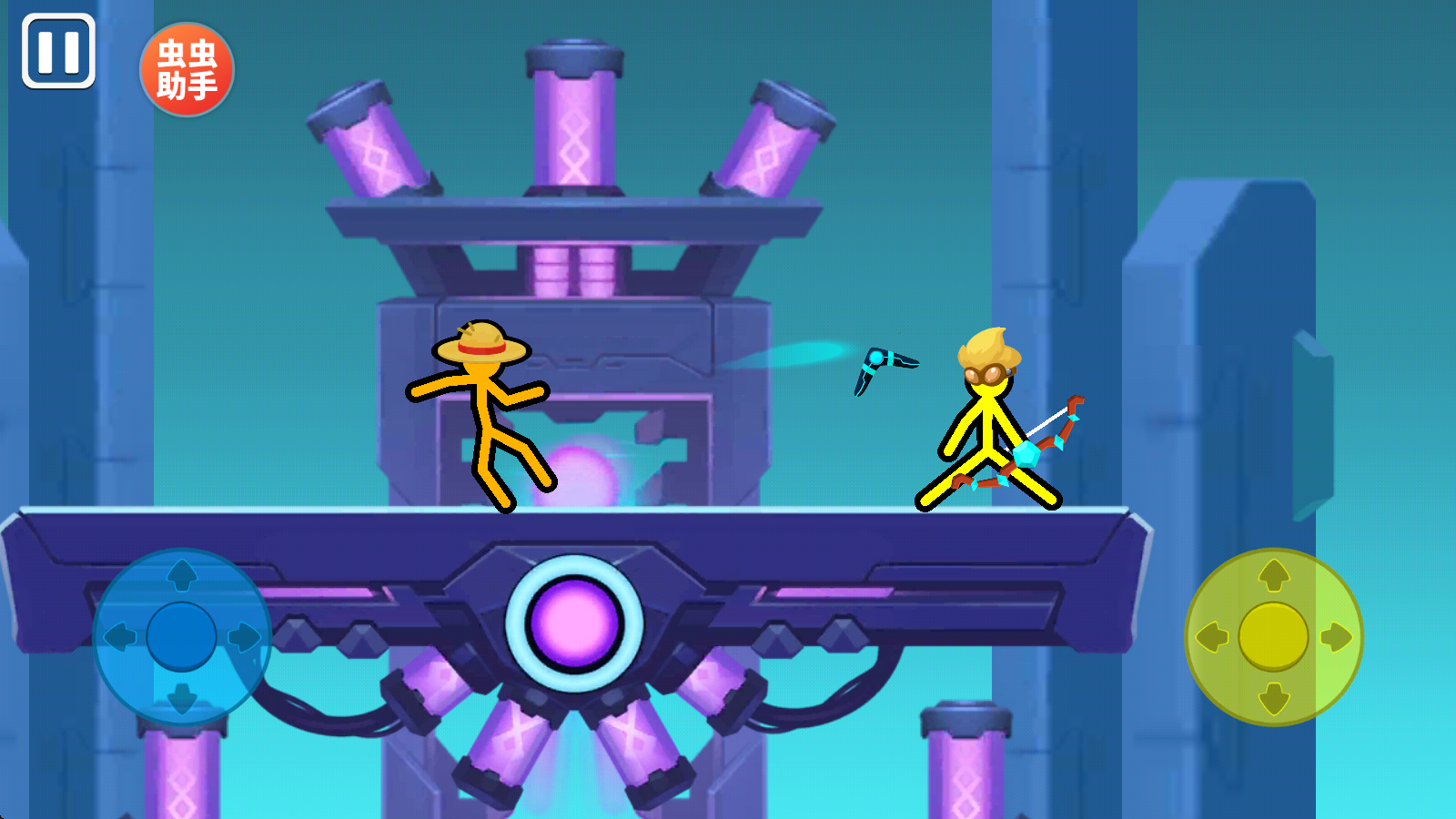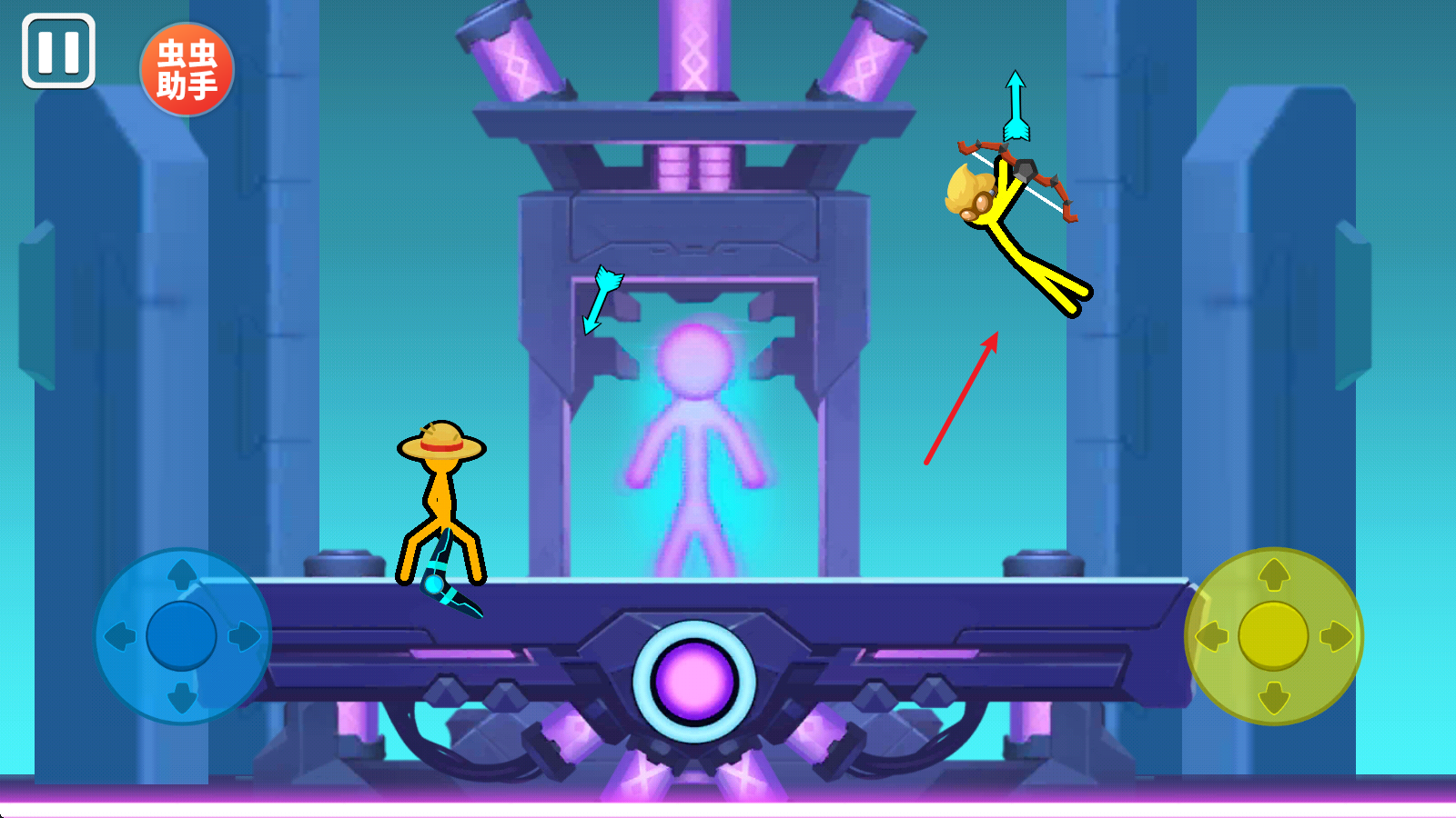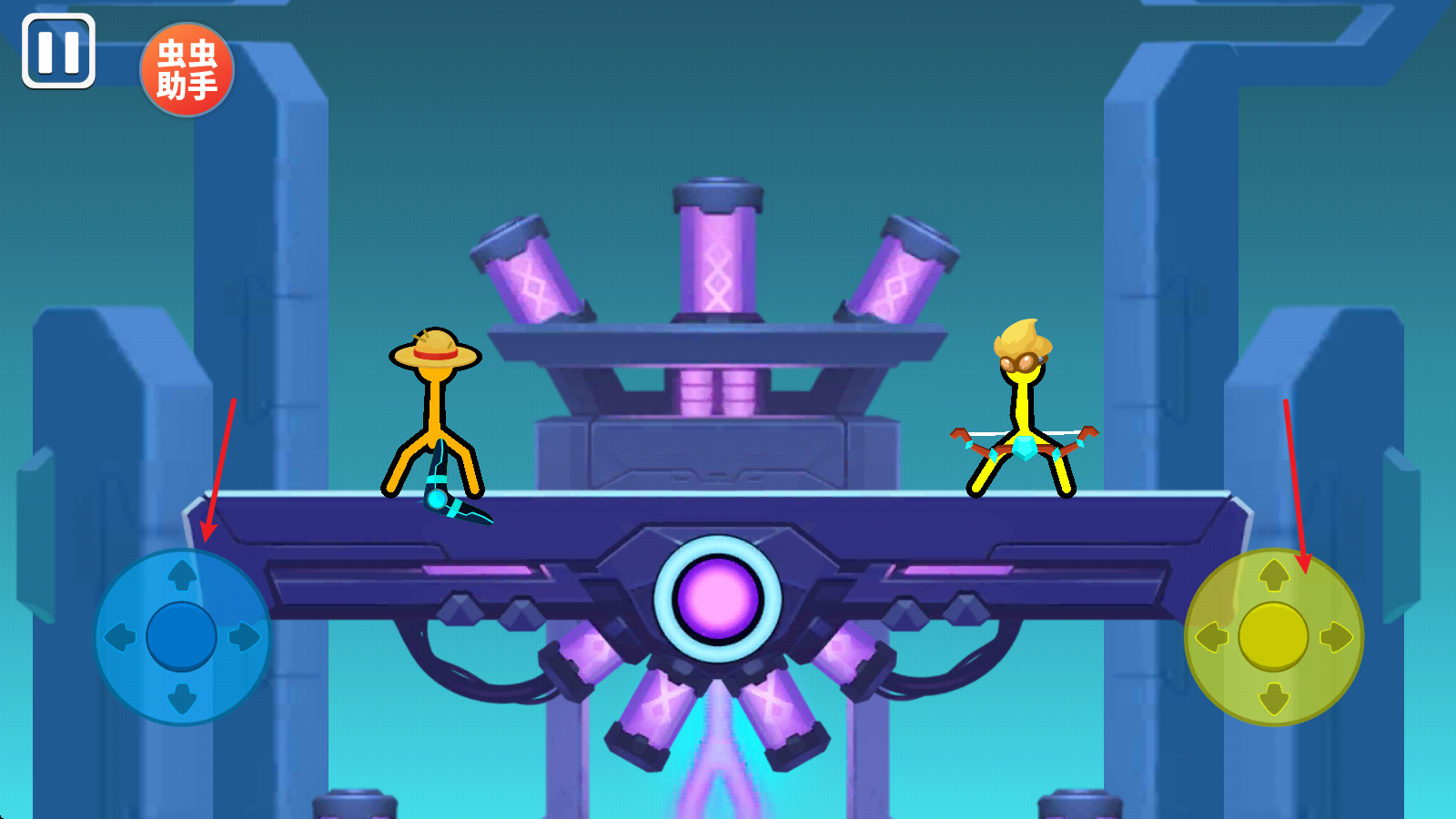3、然后就会正式进入游戏当中,左右两侧的虚拟键盘分别控制对应的角色。