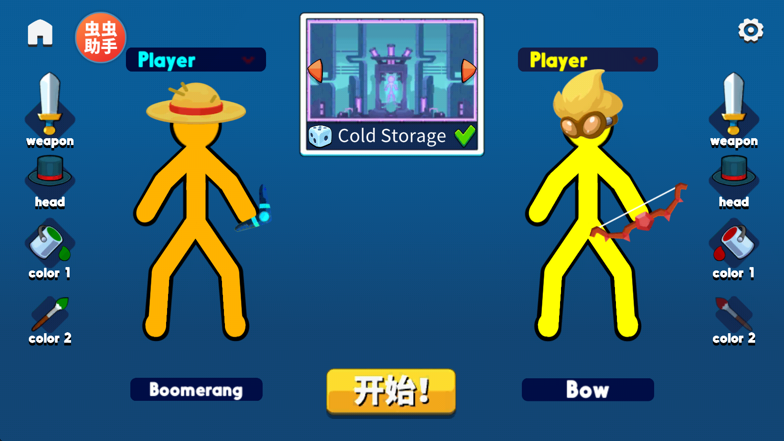 2、接着按照喜好去选择火柴的配色、外观,以及武器。