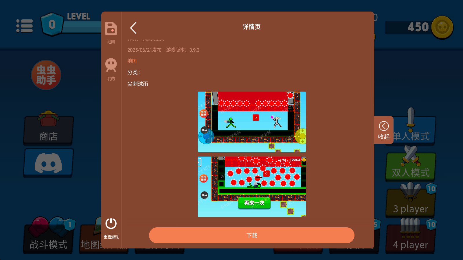 至尊决斗者火柴人中文版,由虫虫助手提供汉化服务后的版本,并且丰富地图模组,一键即可使用!在游戏中,我们将会选择自己的火柴人战士,并拿上各种炫酷的武器,在丰富多样的地图中展开一场刺激的对决,只需单手即可轻松操作,尽情享受格斗的乐趣!不仅如此,我们还可以自己去设计地图,并且和小伙伴们共同游玩,一起享受精彩的对决乐趣。