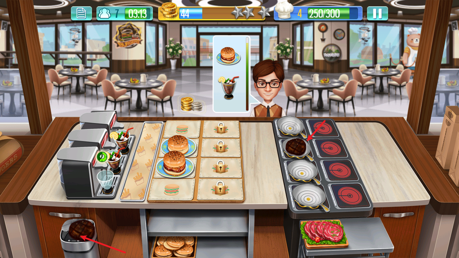 3、考验你手速的时候到了,合理的分配好制作时间,在最短的时间内完成每一份食物的制作,带给顾客最棒的用餐体验。