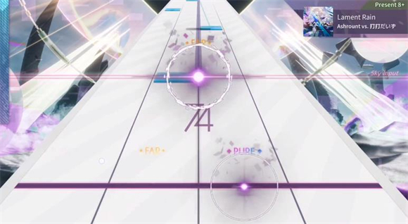 4、首先是基础的通关判定,屏幕左侧的回忆收集条满70%时即可通关,在游玩过程中第一次收集满70%时会有哐当一声的音效。不同人物技能可改变通关难度。以初始光为例,其技能为“简单”,可以减少lost时丢失的回忆收集率,使用她时通关判定即为Easy Clear(绿C)。初始对立无技能,那么使用她时通关判定便为Normal Clear(紫C)。而比较特殊的是拥有“困难”技能的角色,例如伞对立,回忆条开局便是满的,在变为0时会强制中止游戏,可以理解为ll、邦邦等游戏内的“血条”。使用拥有这类技能的角色通关时判定为Hard Clear(红C)。值得注意的是Hard Clear只要回忆率大于0即可获得。Full Recall(字母F),即一般音游中说的fc,达成条件为无lost。Pure Memory(字母P)是需要在fc的情况下达成无far(可以理解为一般音游中的great或good)全pure(即perfect)。