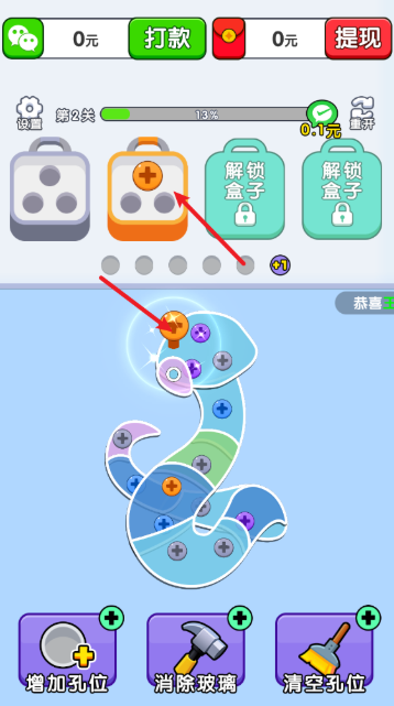 2、当盒子中凑满了三颗螺丝之后就会自动消除,并出现新的螺丝盒。