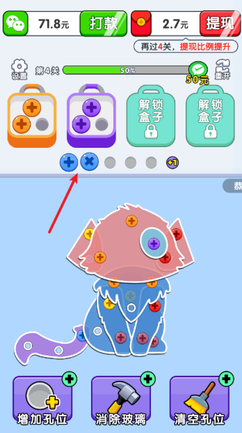 4、成功的消除所有螺丝后就能够顺利过关获得奖励了。