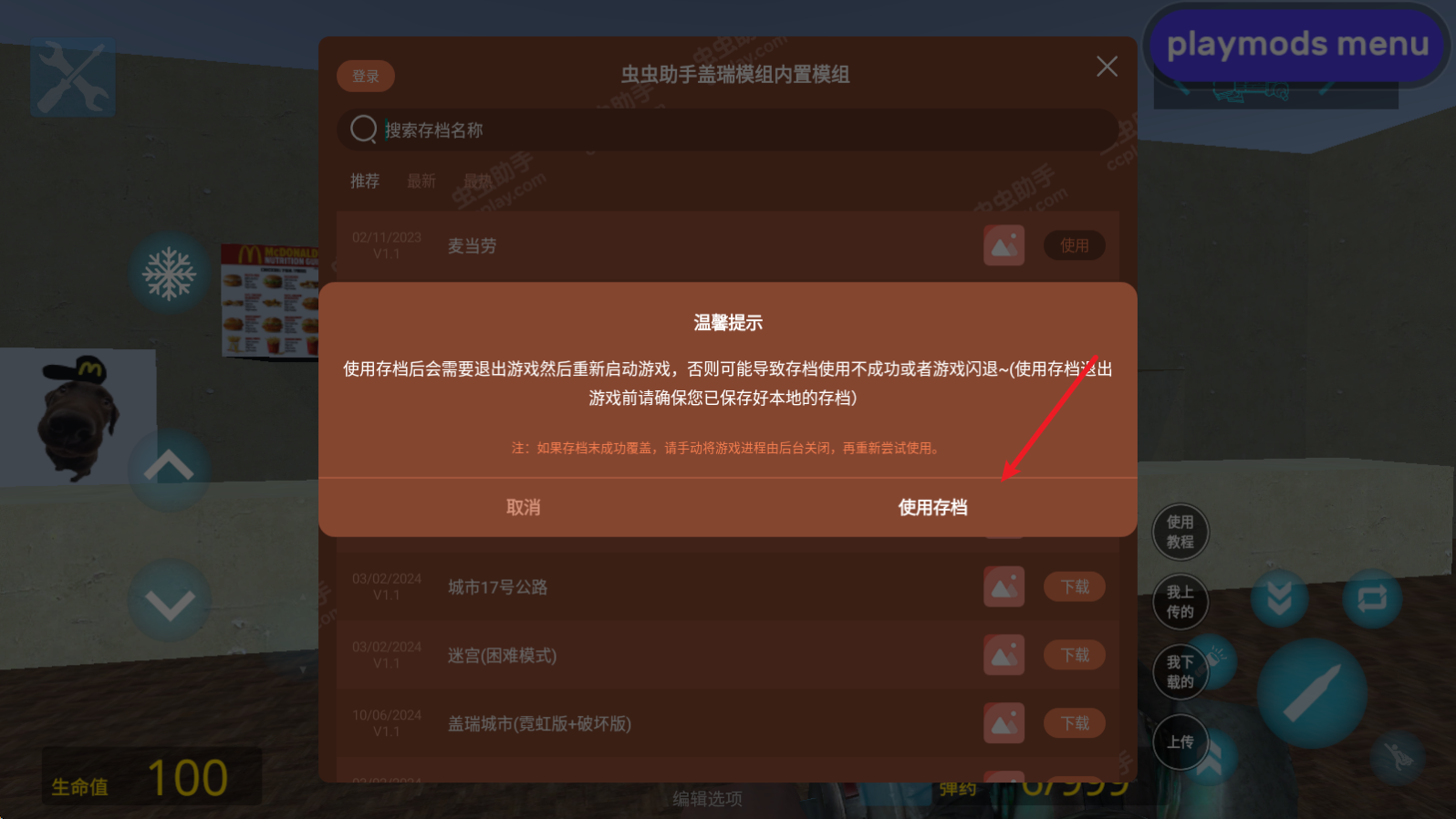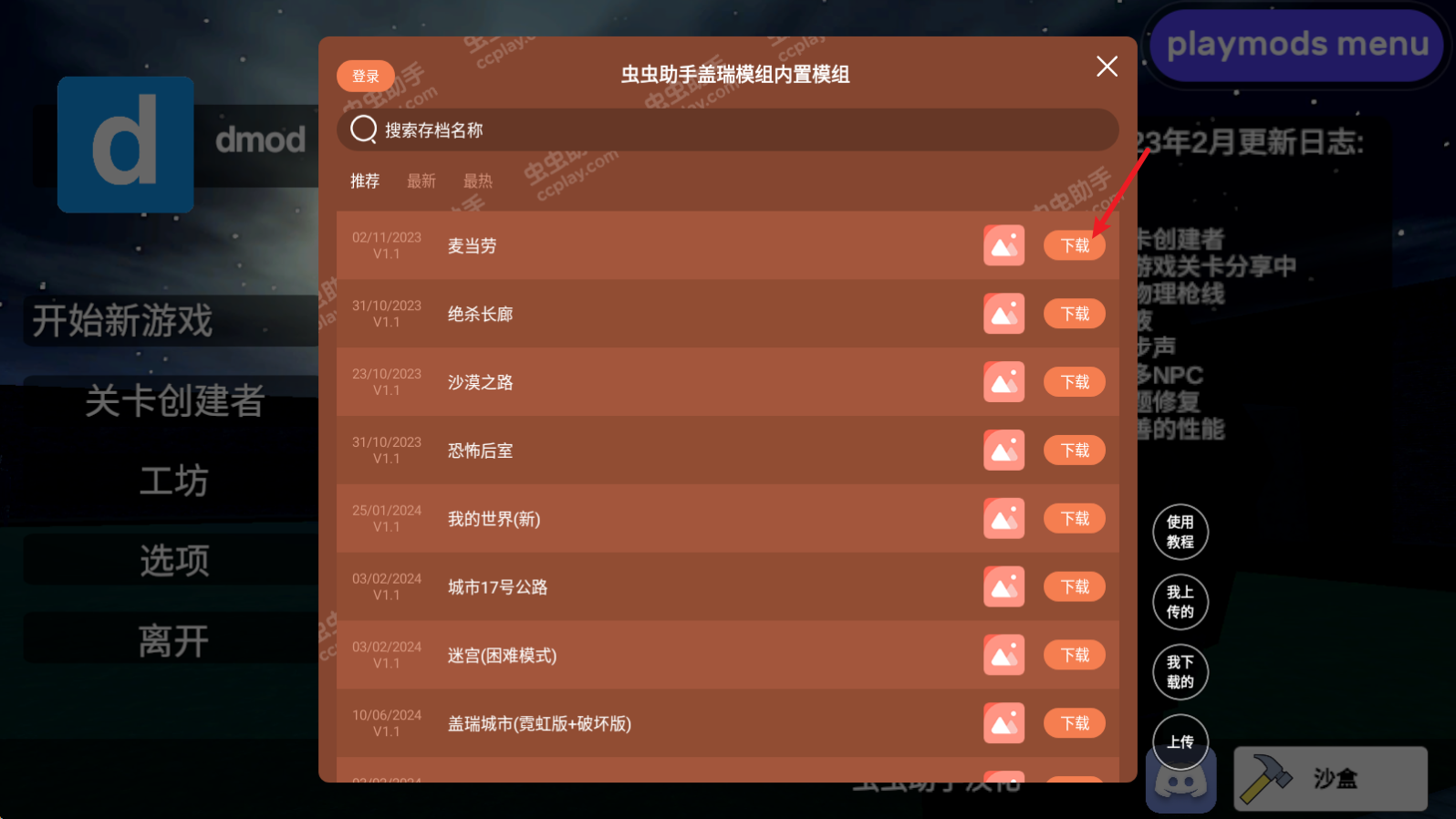1点击开始游戏后,我们既可以自由选择已有的地图进行游戏,也能通过模组来游玩。