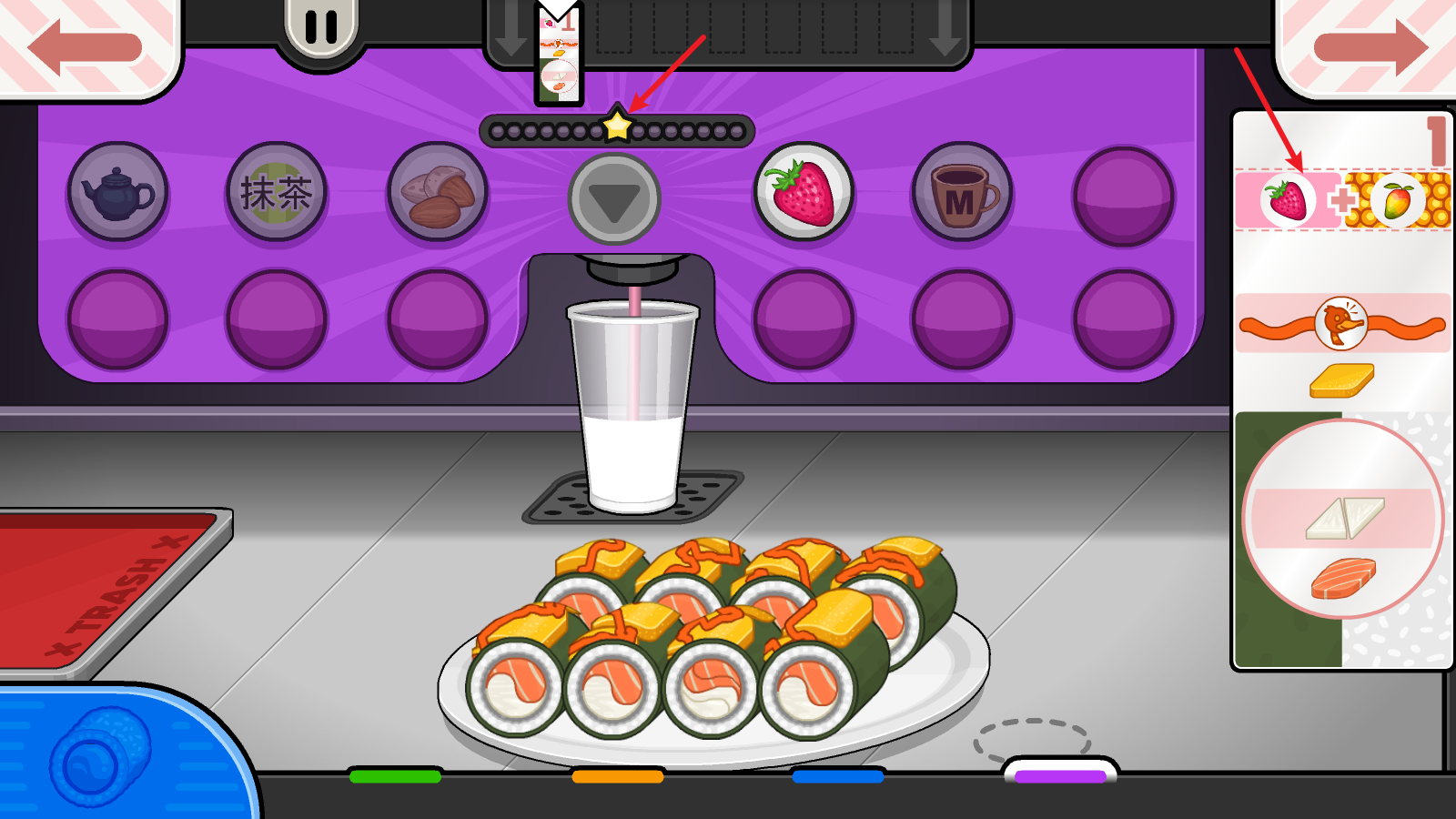 8、最后是饮料部分,选好合适的材料后,停在中间的星星位置就可以了。