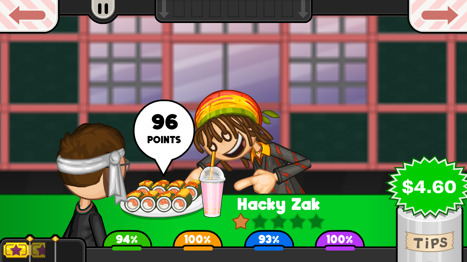 1、亲自做好制作寿司的每一个步骤,严格依照客人的要求来制作,如此就能做出高分寿司,从而拿到更多的小费。