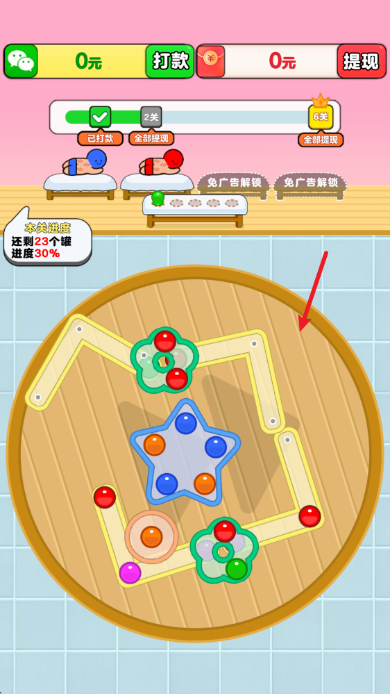 开心拔罐屋,一款趣味休闲的拔罐题材三消闯关游戏。在游戏中我们将会成为一家理疗馆的老板,在这里为客人们拔火罐,我们需要根据客人的颜色点击对应火罐,客人身上放满三个火罐就会完成疗养,并接着出现新的客人,成功用完所有火罐即可顺利过关,收获丰厚的过关奖励!丰富多彩的关卡等着你来挑战,超多奖励等你来拿!