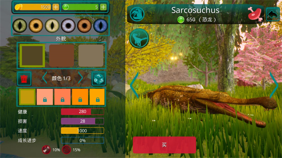 7、Sarcosuchus:水中战神,在水里几乎难逢敌手,不过价格偏高,是除暴龙外第二值得入手的选择,玩起来体验相当畅快。