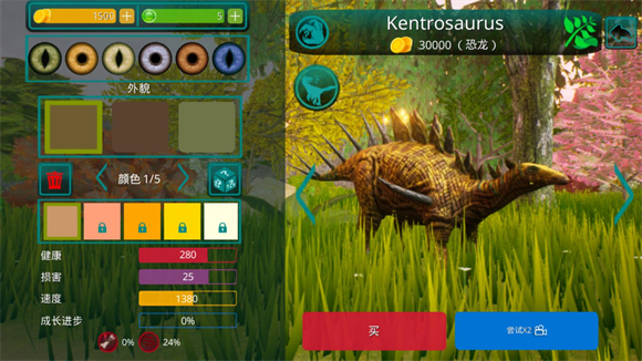 4、钉状龙(Kentrosaurus):价格亲民,各项属性数值表现尚可,美中不足的是移动速度偏慢。