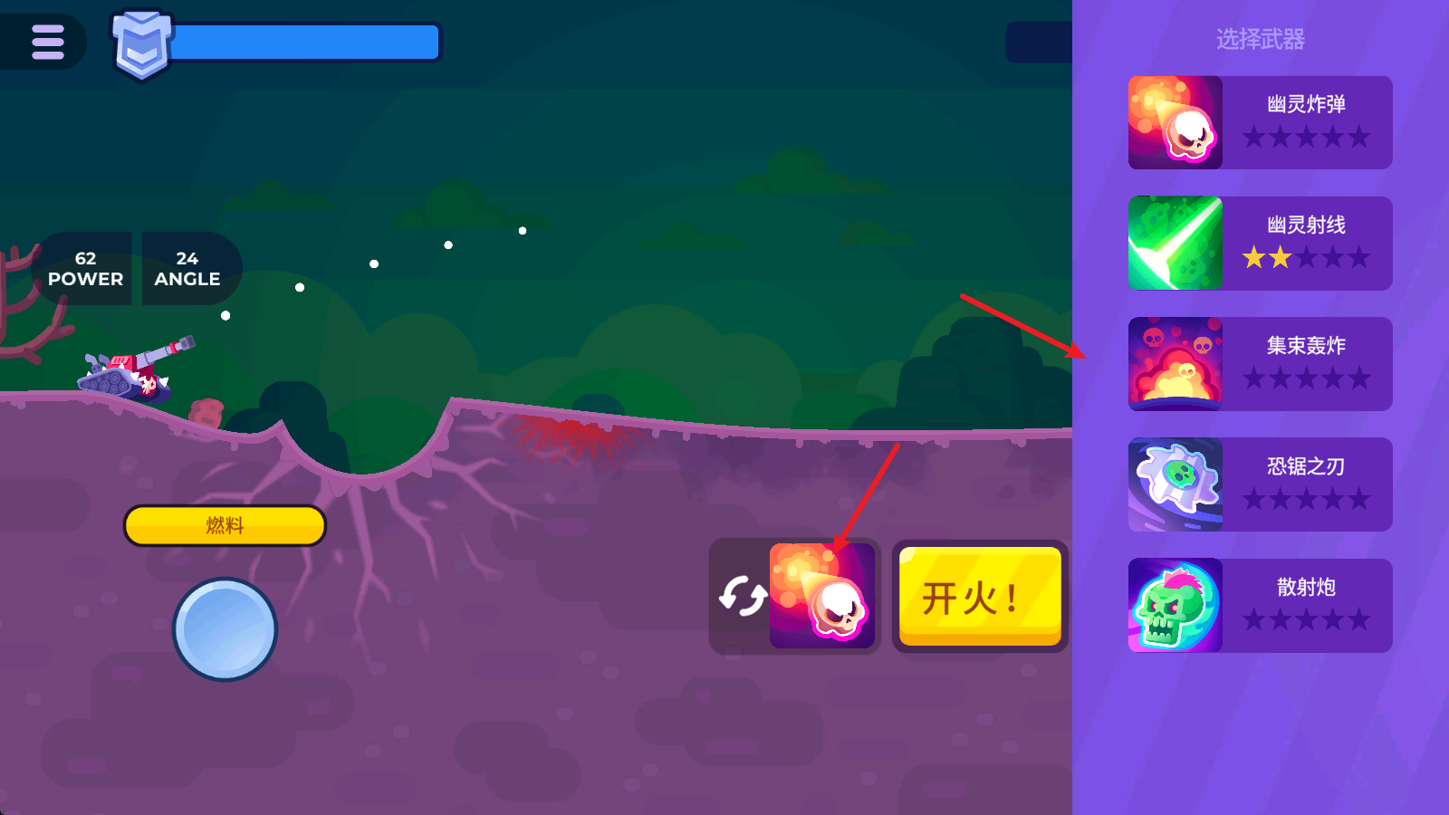 1、丰富多样的关卡可以尽情的去挑战,每一关都有着独特的地形,找到最佳的位置,用特殊的炮弹击毁每一个敌人。