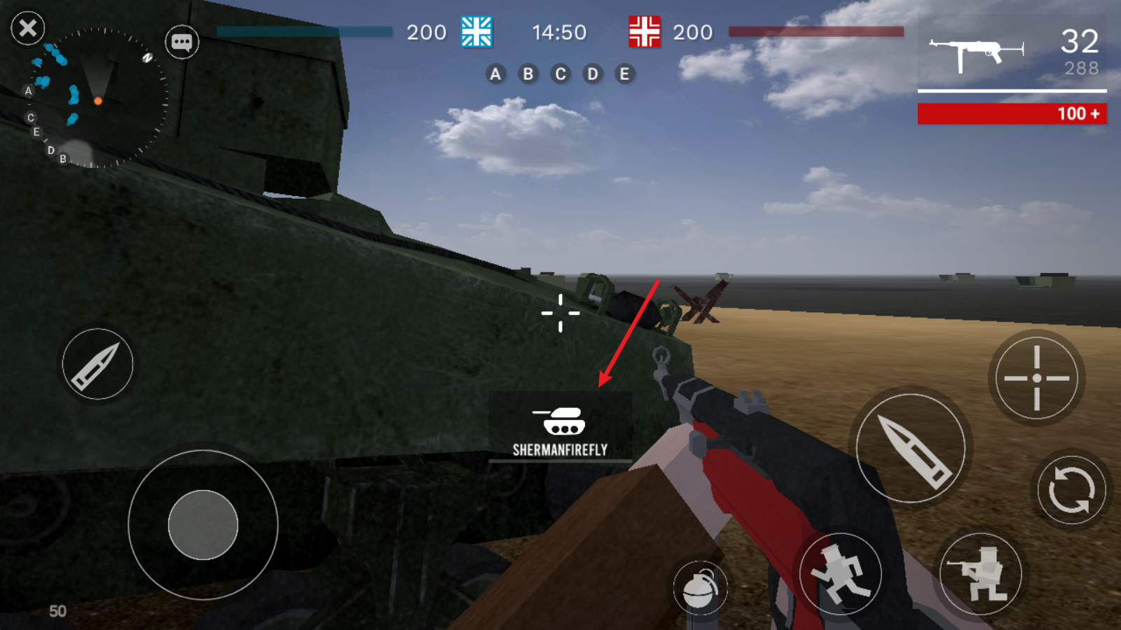 1、靠近坦克之后,中间就会出现一个按钮,点击即可进入坦克。