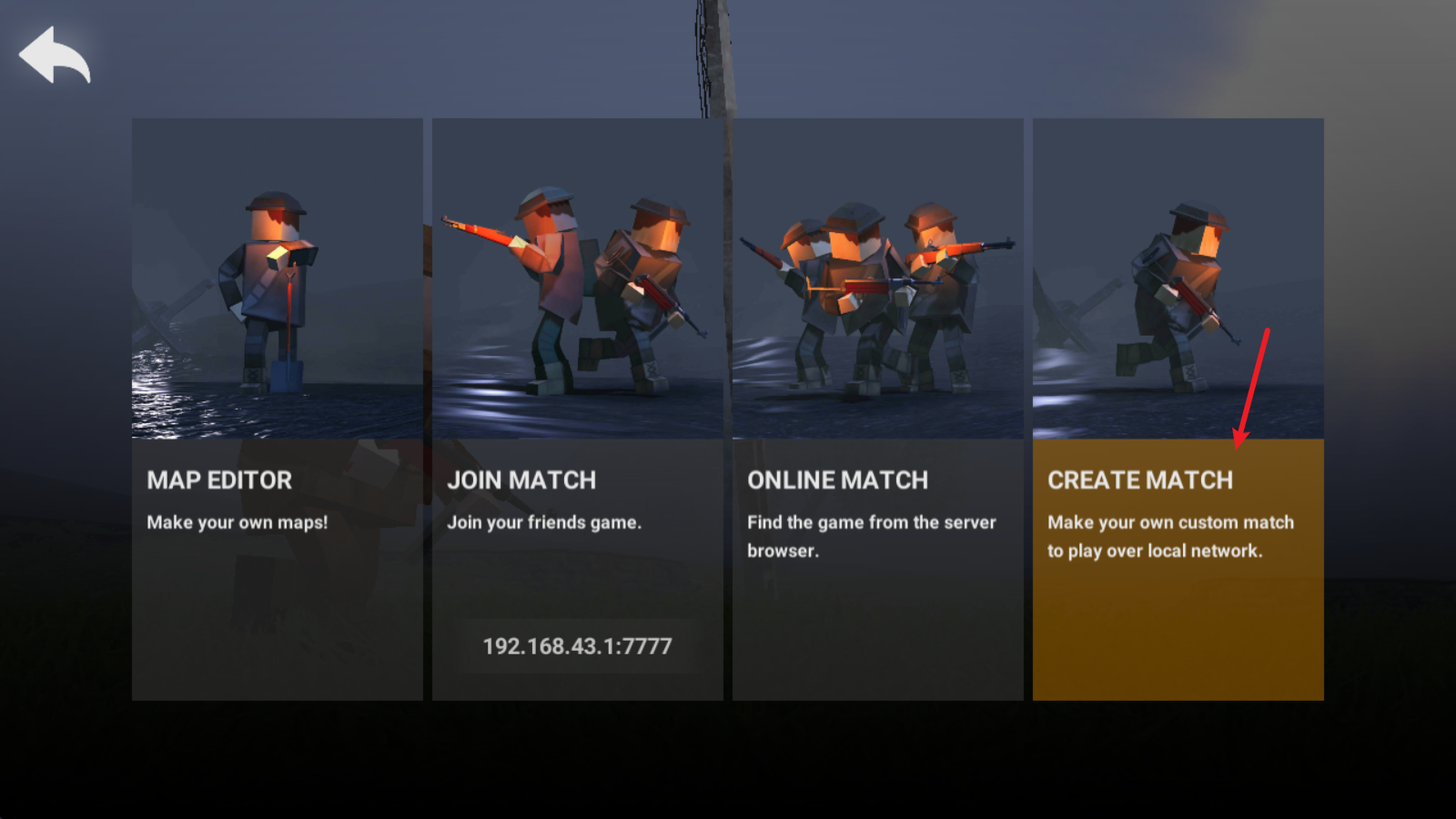 1、进入游戏后,点击play开始游戏,然后需要选择一种模式,这里选择创建比赛,和人机进行战斗。
