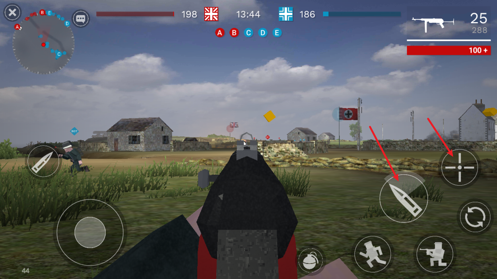 4、遭遇敌人之后,点击右侧瞄准键即可架枪进行瞄准,点击子弹就可以开枪射击了。