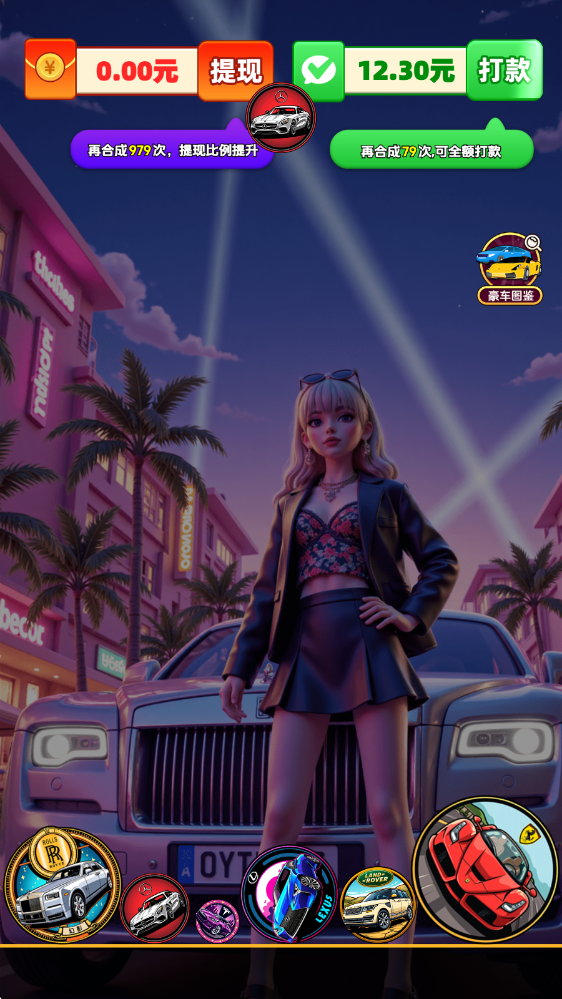 一款以豪车为核心元素的合成类游戏,既能在闲暇时轻松消遣时光,又因独特的主题设定让玩法内容更显丰富,合成过程充满乐趣,更有机会通过合成操作赢取丰厚奖励。
