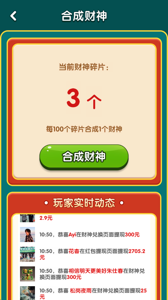 3、合成出的财神不仅有收藏价值,还能直接用来兑换各种福利,数量越多,兑换的奖励就越丰厚。
