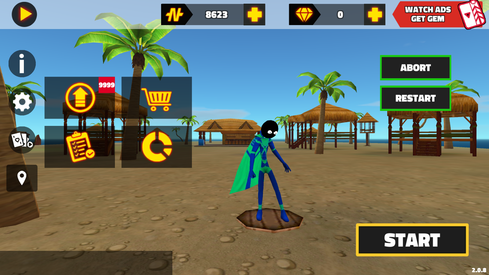 火柴人超级英雄(Stick Superhero),火柴人题材的一款大型城市冒险游戏。游戏中玩家将化身成为火柴人超级英雄,利用自己的特殊能力惩恶扬善,如超级飞行、超级踢、激光眼等能力,自由自在的穿梭在城市中,接取各种任务,消灭所有的罪犯!你还可以收集各种武器,让你更加顺利的完成任务!