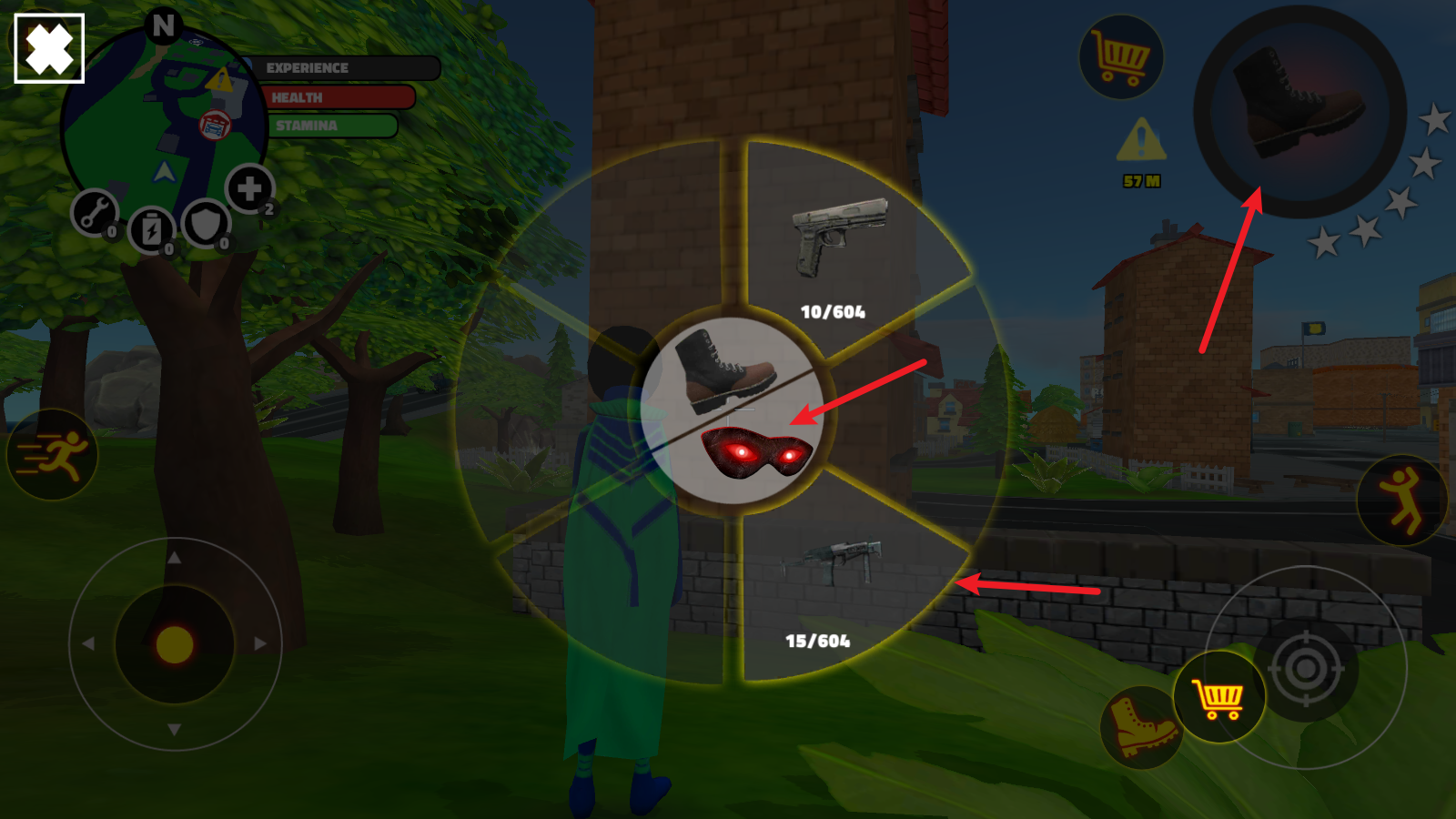 3、点击右上角的鞋子,可以切换自己的武器,除了武器外,还有自己的超能力。