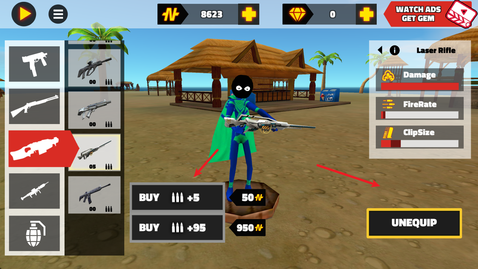 2、接着左侧就可以看到非常多不同类型的武器可以购买,购买完了不要忘记买子弹哦!