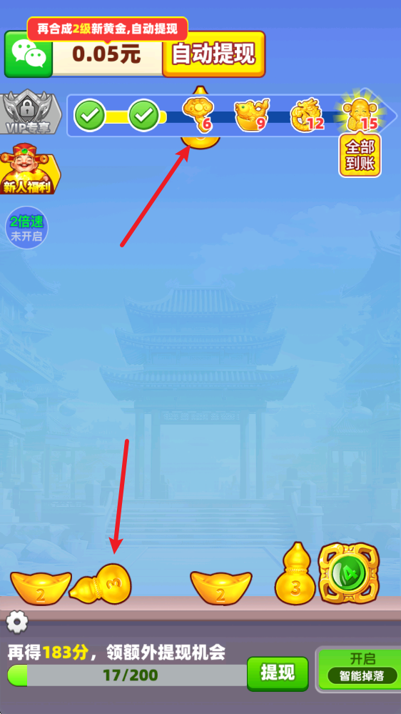 4、合成出六级物品后就会解锁自动合成,解放你的双手。