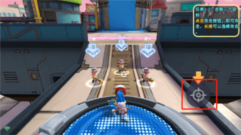 2、左屏滑动可移动角色,点击屏幕右侧的攻击按钮即可开枪射击