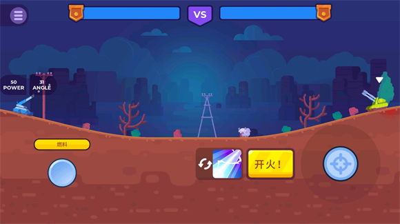 3进入对战场景后,通过点击左侧区域操控战车移动,滑动右侧的控制盘调整射击的角度与力度,最后按下发射按钮即可向对方战车发起攻击。