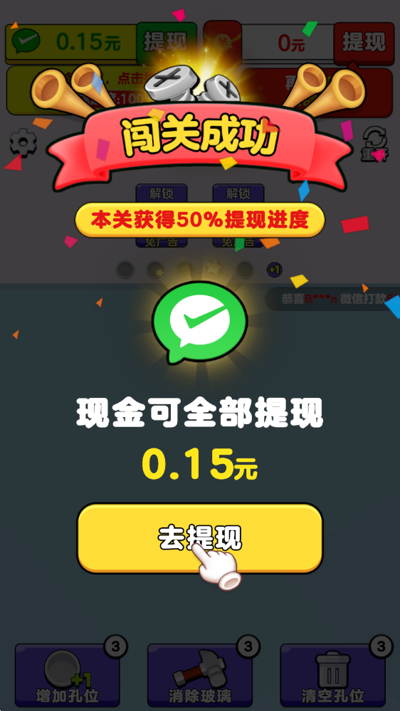 4、顺利拆除所有螺丝后,即可成功通关并领取奖励。