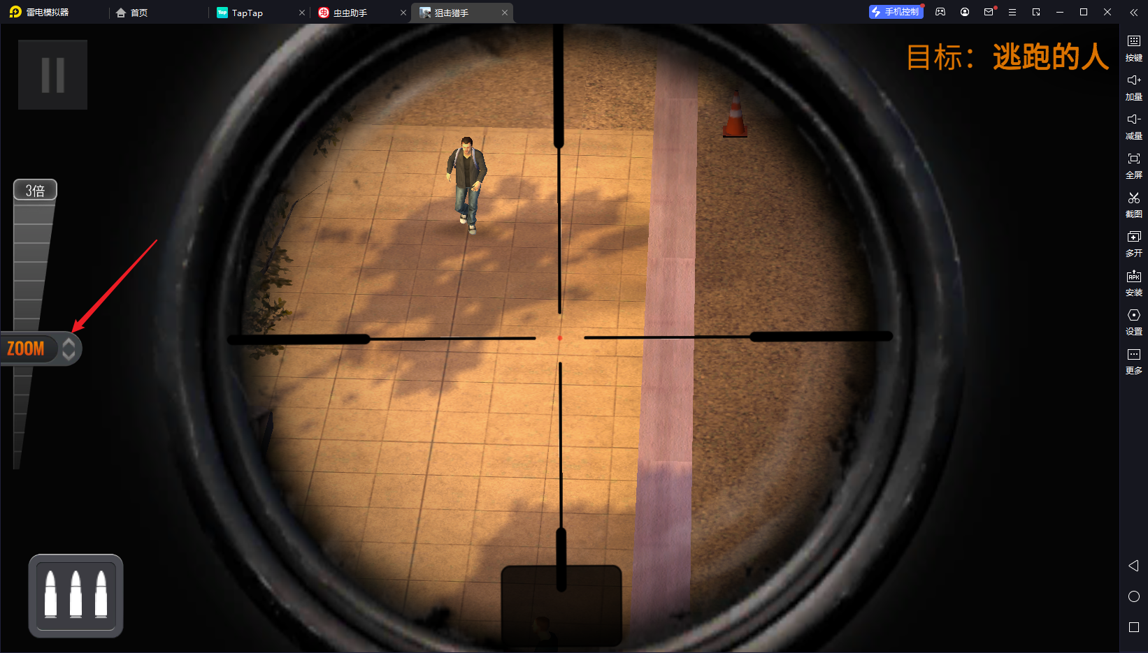 3、接着拖动左侧的按钮,这样就能打开瞄准镜,向上推还能瞄准的更近。