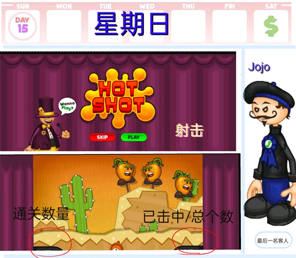 7、射击:在射击关卡里,只需击中敌人就行,左侧显示的是通关所需的数量,右侧则是已经击中的个数。