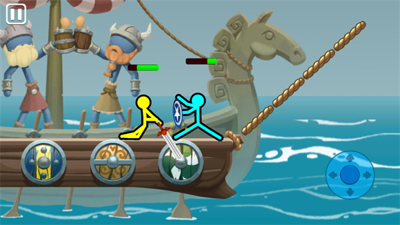 3进入地图场景后,玩家无需对角色的移动方向进行操作,仅需通过操控界面右侧的攻击按键,即可指挥火柴人开展战斗。