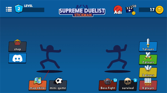 1进入游戏后,在界面右侧点击想要游玩的模式即可开始游戏,包含1-4人对战模式、boss战斗和生存模式。不过boss战斗与生存模式需要达到特定等级才能解锁。