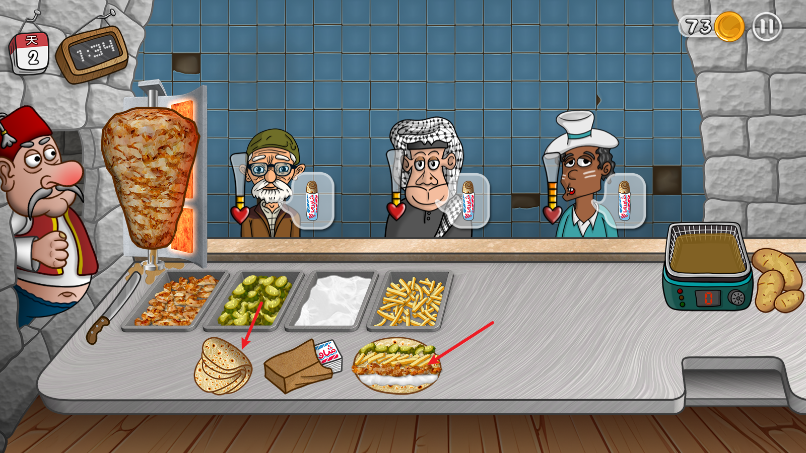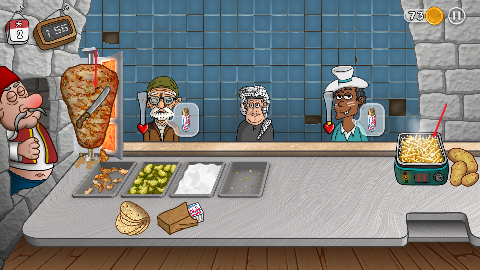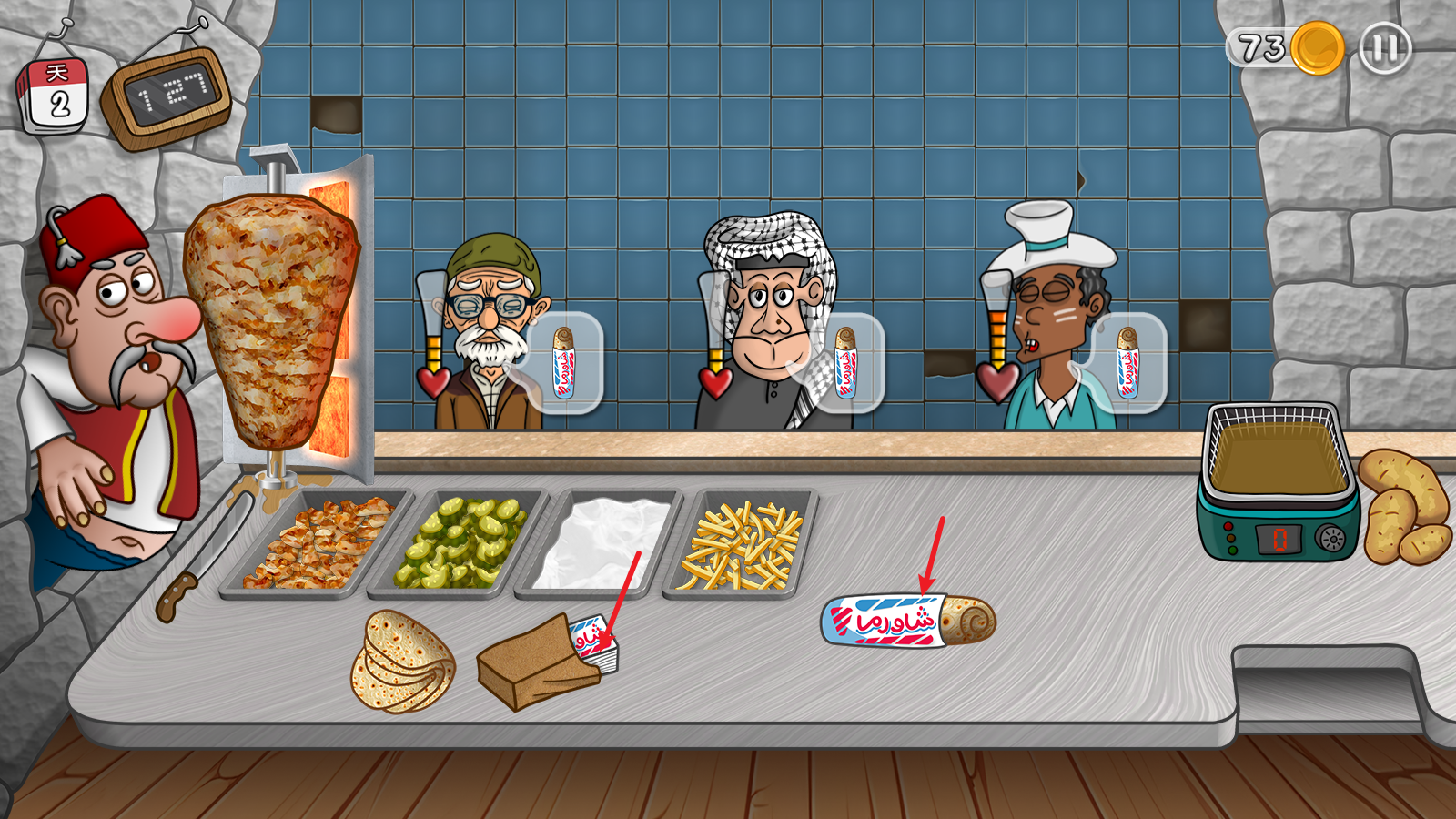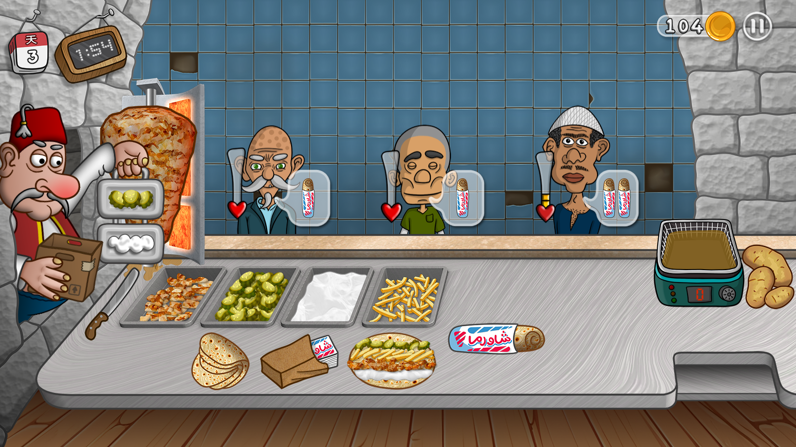 2、随着游戏的不断进行,你将会遇到更多不同类型的顾客,需要根据他们的口味来定制合适的沙威玛。